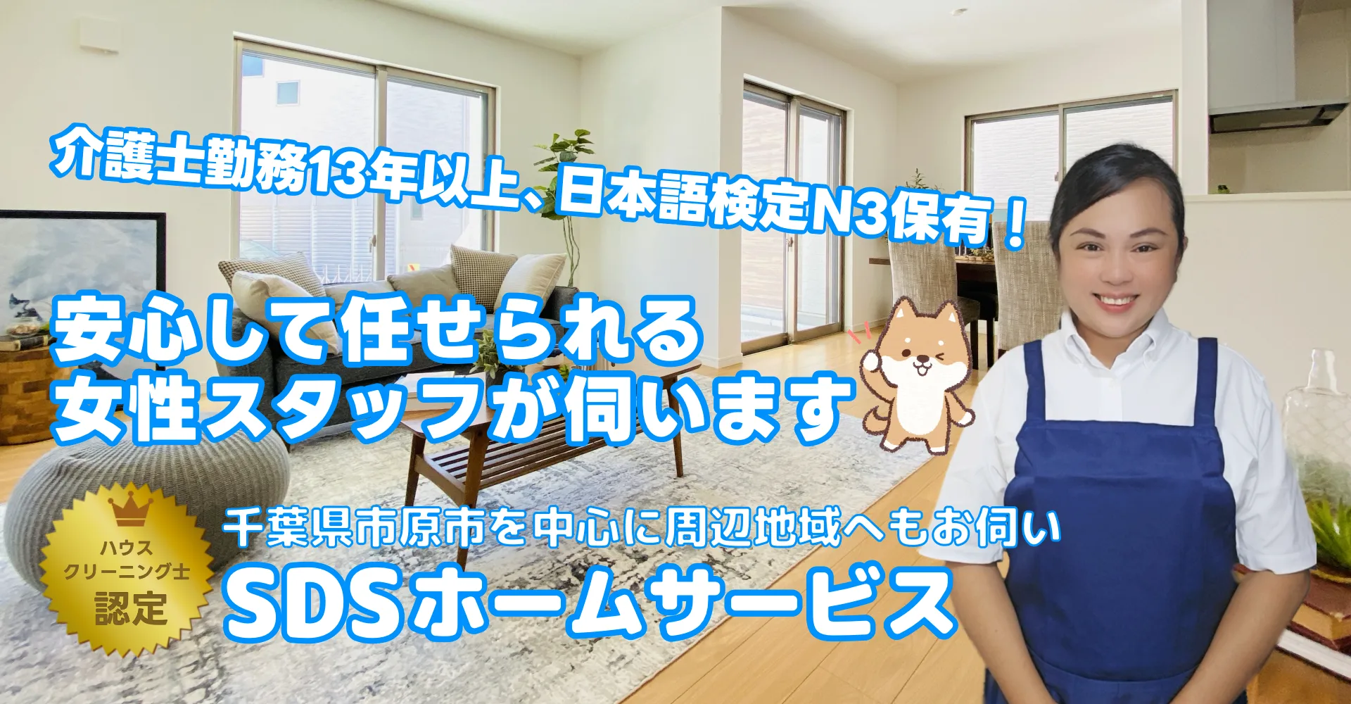 SDSホームサービスの松浦シェラ(マツウラ シェラ)と申します。介護のお仕事を13年間続けてきました。