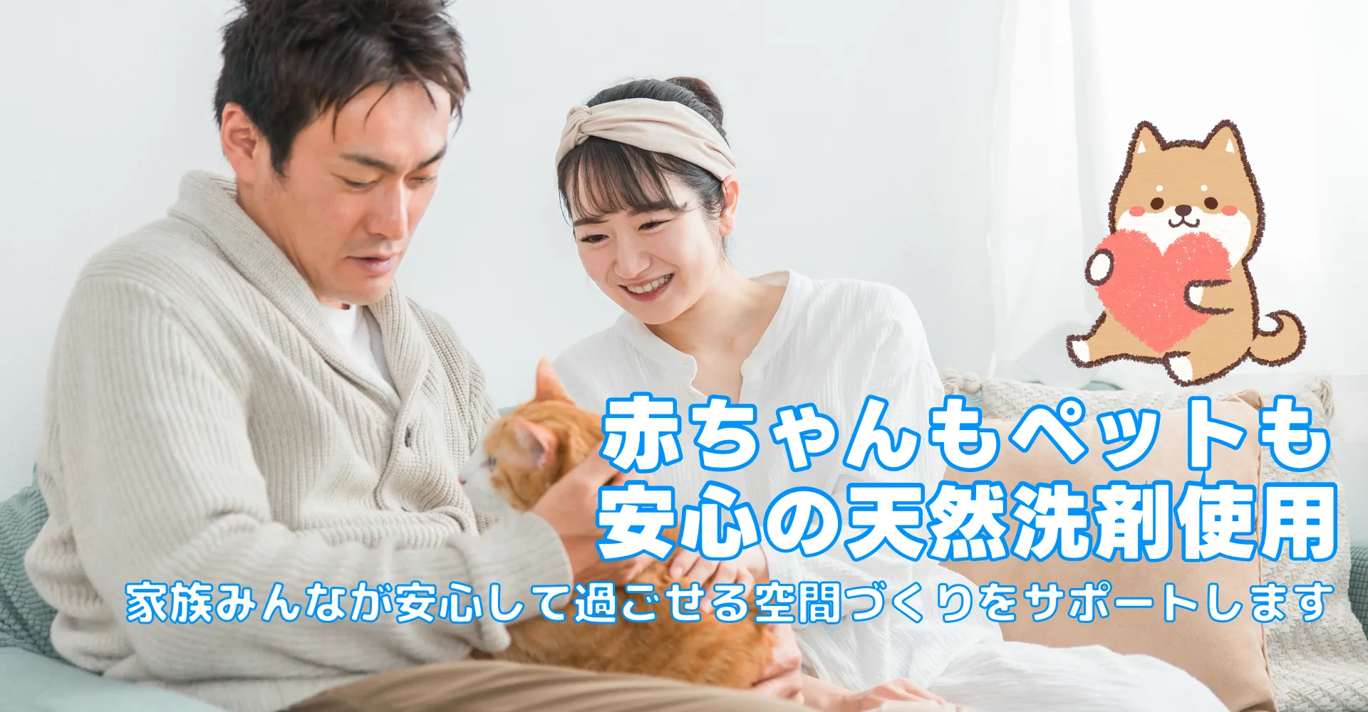河川や海に流れても安心なエコ洗剤天然植物洗剤「天使の松」を使用。人にも優しく、小さなお子様やアレルギーのある方でも安心です。